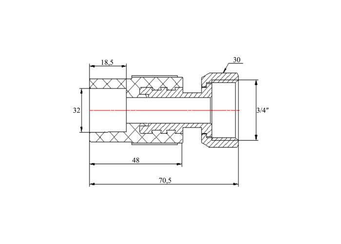 Муфта PPR Blue Ocean с накидной гайкой 32х3/4" ВР служит для соединения полипропиленовой трубы со стальной или с элементом инженерной системы с резьбовым подключением. Она состоит из полипропиленового корпуса с внутренней трубной резьбой из латуни диаметром 3/4" и накидной шестигранной гайки. С обратной стороны расположен выход с диаметром 32 мм для подключения методом сварки. Благодаря материалу изготовления изделие быстро нагревается и не прилипает к насадкам паяльника.