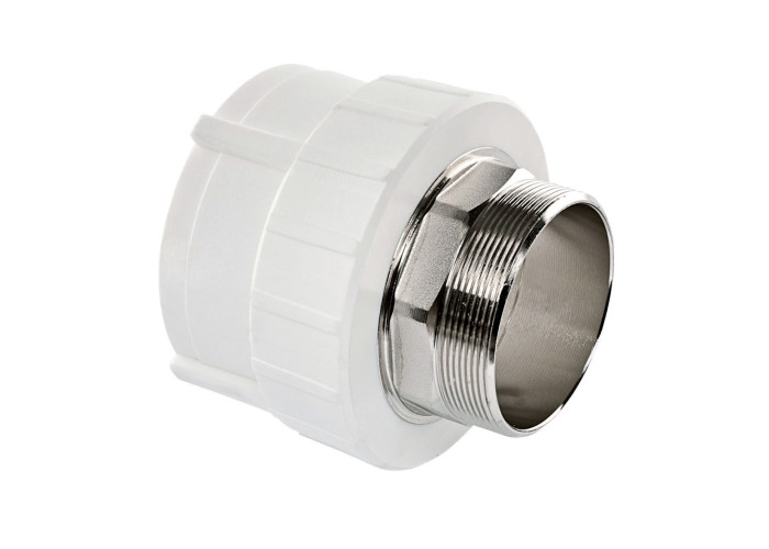 Біла поліпропіленова муфта під ключ Ø50 х 1.1/2" зовнішня TEBO. Продукція поставляється в білому і сірому кольорі і представляє широкий діапазон з'єднувальних елементів і гідравлічної арматури: від 20 до 160 мм. В цілому асортимент бренду ТЕВО включає понад 1000 товарних позицій. У конструкції фітингів ТЕВО technics закладено кілька принципових рішень, що підвищують надійність і зручність застосування. Латунні елементи комбінованих фітингів мають зворотні проточки, що забезпечують надійніше приєднання латунної і поліпропіленової частин. Герметичність з'єднання зберігається навіть при підвищених механічних навантаженнях. Спеціальні мітки на поверхні фітингів спрощують процес монтажу. Продукція повністю відповідає нормам ГОСТ та DIN, проходить контроль якості на всіх етапах виробництва, де використовується високоякісна сировина з Німеччини та Південної Кореї. Розрахунковий термін служби – 50 років за умови правильного монтажу і експлуатації.