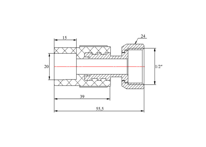 Муфта PPR Blue Ocean з накидною гайкою 20х1/2" ВР служить для з‘єднання поліпропіленової труби зі сталевою або з елементом інженерної системи з нарізним підключенням. Вона складається з поліпропіленового корпусу з внутрішньою трубною різьбою з латуні діаметром 1/2" і накидної шестигранної гайки. Зі зворотного боку розташований вихід з діаметром 20 мм для підключення методом зварювання. Завдяки матеріалу виготовлення виріб швидко нагрівається та не прилипає до насадок паяльника.