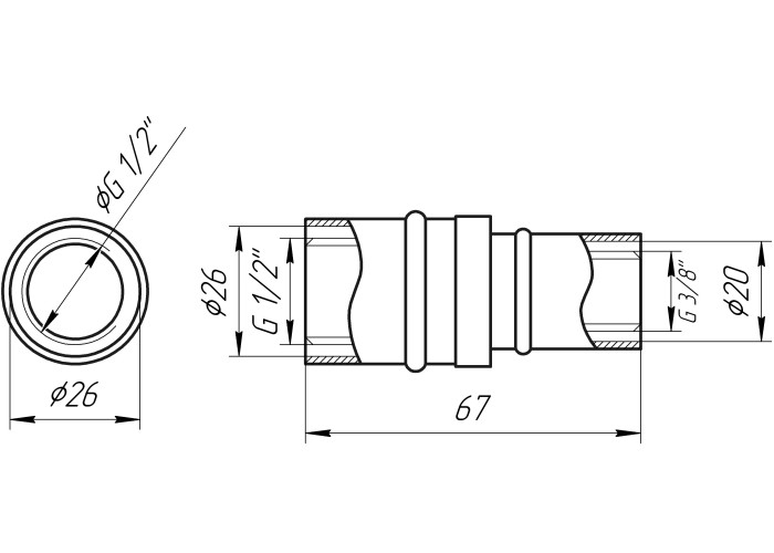 AP 103 Пресс муфта промежуточная 26*20 ( APE ITALY )