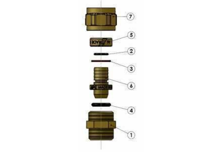 -Муфты серии 701 L были спроектированы и реализованы для оказания помощи установщику, сокращая время на монтаж и увеличивая характеристики стойкости во времени. Кроме того, данная серия фитингов не требует особых инструментов для монтажа Стойкость крепления между трубой и фитингом гарантируется одновременным наличием двух уплотнительных колец (2), расположенных в елочке (6 )и особой, противоскользящей, формой самой елочки (в виде зубов пилы). Крепление трубы происходит за счет особого вида прессования, состоящего из радиального прессования, полученного за счет завинчивания гайки (7 )которая определяет сжатие разрезанной оживальной части ( 5) вокруг трубы и осевого прессования, которое сжимает уплотнительное кольцо (4) на корпусе. Подобная система прессования гарантирует стойкость полученного соединения в любых условиях работы. Кроме того, работая на латуни в прессовании, исключаются риски возникновения микротрещин. Наличие шайбы (3) из PTFE изолирует алюминий трубы от латуни фитинга для избегания возникновения коррозийных эфектов