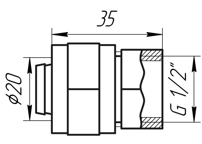 Габариты : 1/2*20 на 20 металлопластиковую трубу