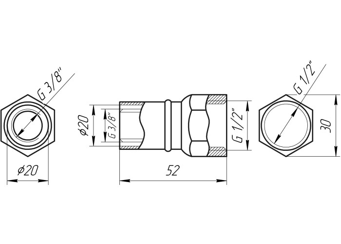 Габариты : 1/2*20 на 20 металлопластиковую трубу