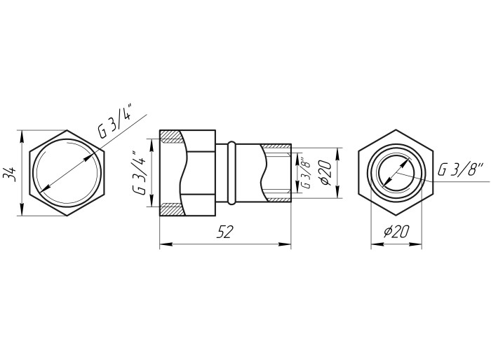 Габариты : 3/4*20 на 20 металлопластиковую трубу