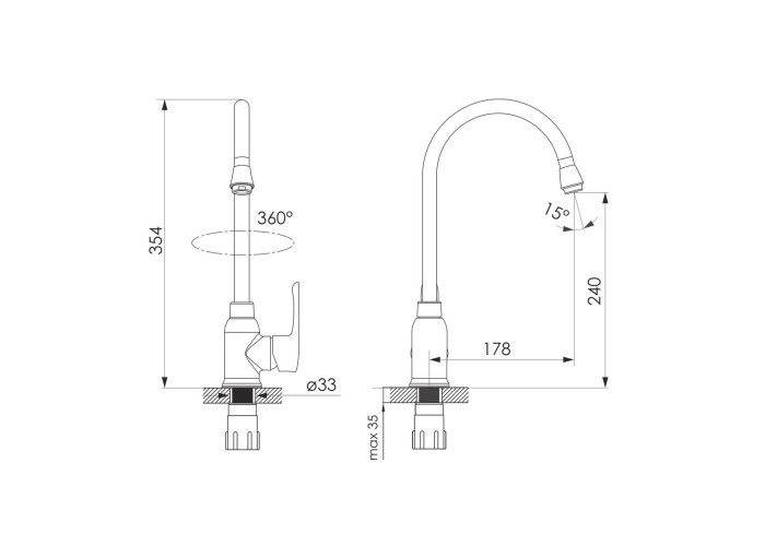 MZE смеситель для кухни, хром, 35мм Однорычажный, керамический узел смешивания, расход воды до 7 л/мин, аэратор, подходит для проточных нагревателей