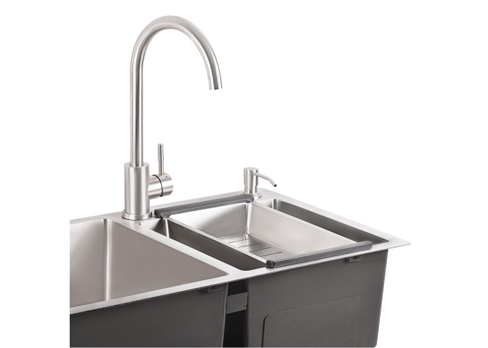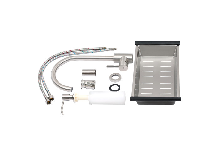 Набор 4 в 1 Qtap S7843 Set - комплексное решение обустройства моечной зоны. В состав набора входит современная прямоугольная кухонная мойка, которая изготовлена из прочной нержавеющей стали, кухонный смеситель с удобным рычагом управления, компактная и практичная сушилка для посуды и вместительный дозатор для моющего средства. Набор способен удовлетворить самые высокие требования, так как все изделия изготовлены из качественных материалов, что увеличивает срок эксплуатации.