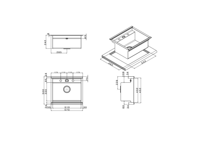 Мойка, стеклянные крышки (2шт), смеситель, сифон, слив-перелив, донный клапан с крышкой, крепежи.