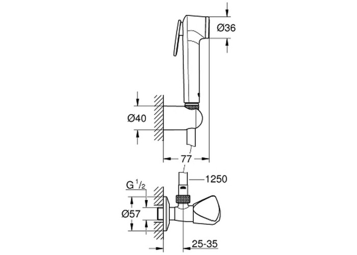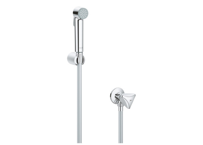 Лейка для гигиенического душа (27512001), кронштейн для гигиенического душа (28605000), шланговое присоединение с вентилем (22958000), душевой шланг (26335000), крепежи.
