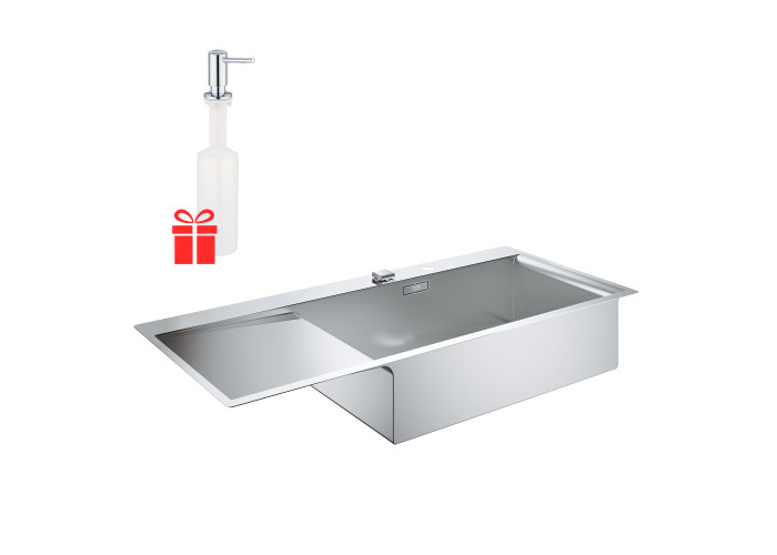 Набір Grohe мийка кухонна K1000 31582SD0 + дозатор для миючого засобу Contemporary 40536000 стане незамінним атрибутом будь-якої сучасної кухні. Стійкість до пошкоджень, чистячих засобів, а також довговічність мийки забезпечується завдяки якісної нержавіючої сталі. Ізоляція GROHE Whisper на нижній частині мийки зменшує шум. Дозатор призначений для зберігання миючого засобу або рідкого мила. Він встановлюється під стільницю або під мийку. Обсяг резервуара - 500 мл.