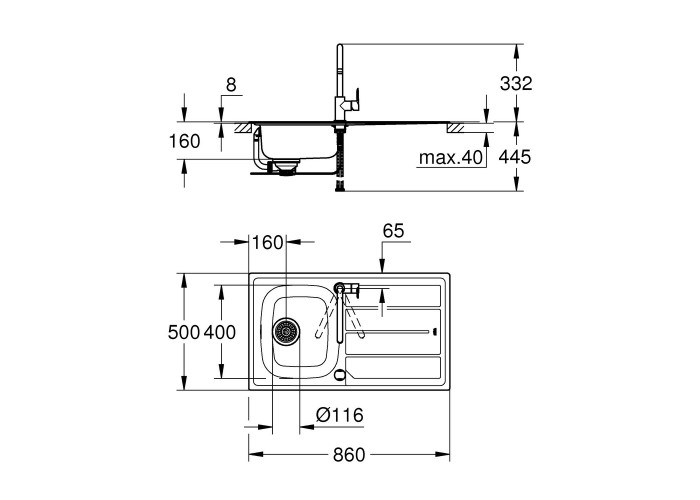 Мойка: Grohe K200 31562SD0. Смеситель: Grohe BauEdge 31367000