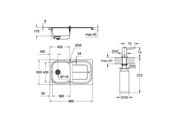 Набор Grohe мойка кухонная K300 31563SD0 + дозатор для моющего средства Contemporary 40536000