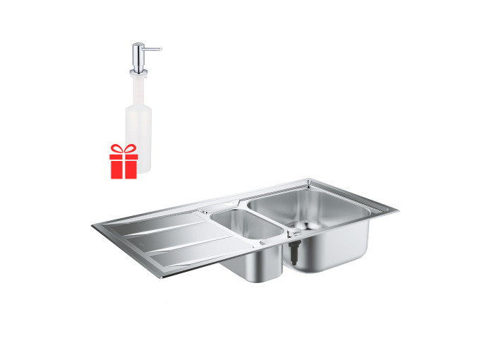 Набір Grohe мийка кухонна K400 31569SD0 + дозатор для миючого засобу Contemporary 40536000 стане незамінним атрибутом будь-якої сучасної кухні. Стійкість до пошкоджень, чистячих засобів, а також довговічність мийки забезпечується завдяки якісної нержавіючої сталі. Ізоляція GROHE Whisper на нижній частині мийки зменшує шум. Дозатор призначений для зберігання миючого засобу або рідкого мила. Він встановлюється під стільницю або під мийку. Обсяг резервуара - 500 мл.