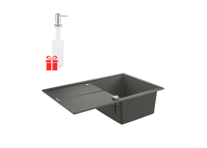 Набір Grohe мийка кухонна K400 31639AT0 + дозатор для миючого засобу Contemporary 40536000 стане незамінним атрибутом будь-якої сучасної кухні. Мийка виготовлена з кварцевого композиту, який складається з 80% кварцу і 20% акрилової смоли та затверджувача. Ізоляція GROHE Whisper на нижній частині мийки зменшує шум. Дозатор призначений для зберігання миючого засобу або рідкого мила. Він встановлюється під стільницю або під раковину. Обсяг резервуара - 500 мл.