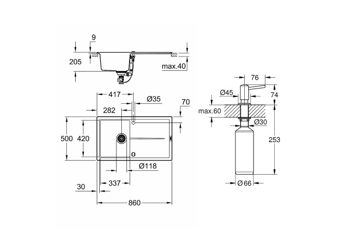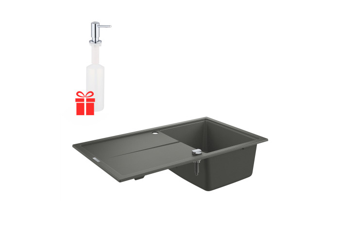 Набір Grohe мийка кухонна K400 31640AT0 + дозатор для миючого засобу Contemporary 40536000 стане незамінним атрибутом будь-якої сучасної кухні. Мийка виготовлена ??з кварцевого композиту, який складається з 80% кварцу і 20% акрилової смоли та затверджувача. Ізоляція GROHE Whisper на нижній частині мийки зменшує шум. Дозатор призначений для зберігання миючого засобу або рідкого мила. Він встановлюється під стільницю або під раковину. Обсяг резервуара - 500 мл.