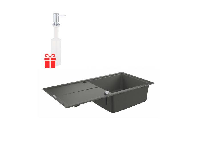 Набір Grohe мийка кухонна K400 31641AT0 + дозатор для миючого засобу Contemporary 40536000 стане незамінним атрибутом будь-якої сучасної кухні. Мийка виготовлена ??з кварцевого композиту, який складається з 80% кварцу і 20% акрилової смоли та затверджувача. Ізоляція GROHE Whisper на нижній частині мийки зменшує шум. Дозатор призначений для зберігання миючого засобу або рідкого мила. Він встановлюється під стільницю або під раковину. Обсяг резервуара - 500 мл.