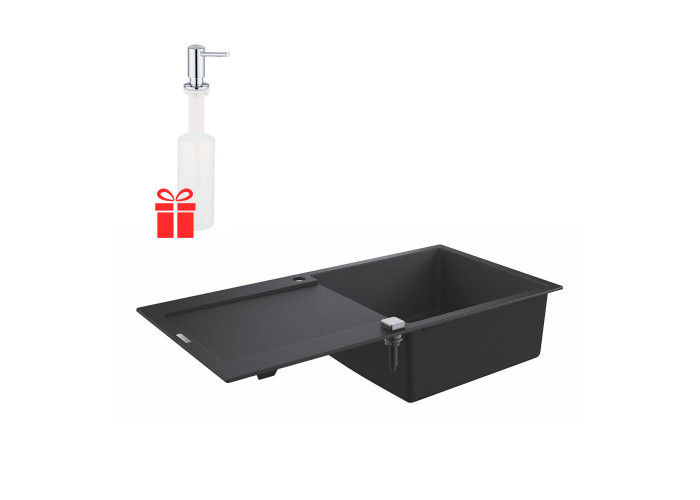 Набір Grohe мийка кухонна K500 31645AP0 + дозатор для миючого засобу Contemporary 40536000 стане незамінним атрибутом будь-якої сучасної кухні. Мийка виготовлена ??з кварцевого композиту, який складається з 80% кварцу і 20% акрилової смоли та затверджувача. Ізоляція GROHE Whisper на нижній частині мийки зменшує шум. Дозатор призначений для зберігання миючого засобу або рідкого мила. Він встановлюється під стільницю або під раковину. Обсяг резервуара - 500 мл.