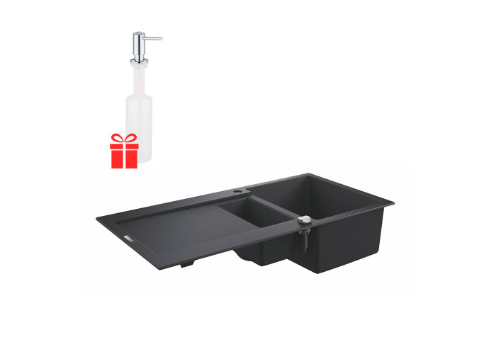 Набір Grohe мийка кухонна K500 31646AP0 + дозатор для миючого засобу Contemporary 40536000 стане незамінним атрибутом будь-якої сучасної кухні. Мийка виготовлена ??з кварцевого композиту, який складається з 80% кварцу і 20% акрилової смоли та затверджувача. Ізоляція GROHE Whisper на нижній частині мийки зменшує шум. Дозатор призначений для зберігання миючого засобу або рідкого мила. Він встановлюється під стільницю або під раковину. Обсяг резервуара - 500 мл.