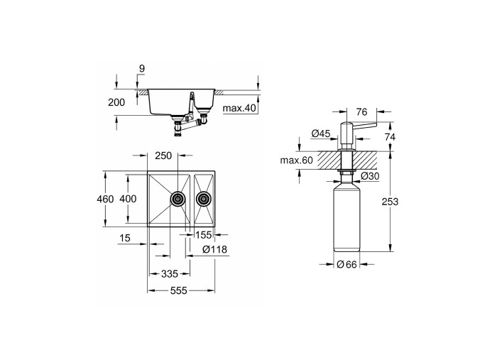 Набор Grohe мойка кухонная K500 31648AP0 + дозатор для моющего средства Contemporary 40536000