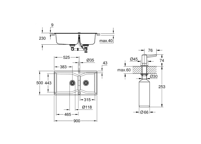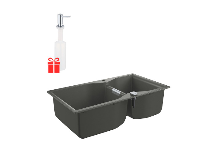 Набір Grohe мийка кухонна K700 31658AT0 + дозатор для миючого засобу Contemporary 40536000 стане незамінним атрибутом будь-якої сучасної кухні. Мийка виготовлена ??з кварцевого композиту, який складається з 80% кварцу і 20% акрилової смоли та затверджувача. Ізоляція GROHE Whisper на нижній частині мийки зменшує шум. Дозатор призначений для зберігання миючого засобу або рідкого мила. Він встановлюється під стільницю або під раковину. Обсяг резервуара - 500 мл.