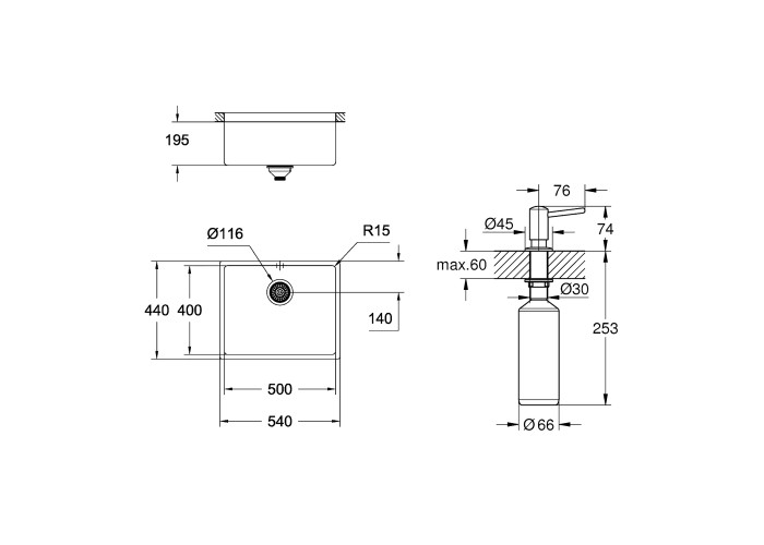 Набор Grohe мойка кухонная K700U 31574GN0 + дозатор для моющего средства Contemporary 40536000 станет незаменимым атрибутом любой современной кухни. Устойчивость к повреждениям, чистящим средствам, а также долговечность мойки обеспечивается благодаря качественной нержавеющей стали. Изоляция GROHE Whisper на нижней части мойки уменьшает шум. Дозатор предназначен для хранения моющего средства или жидкого мыла. Он устанавливается под столешницу либо под раковину. Объем резервуара - 500 мл.