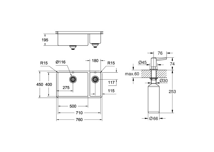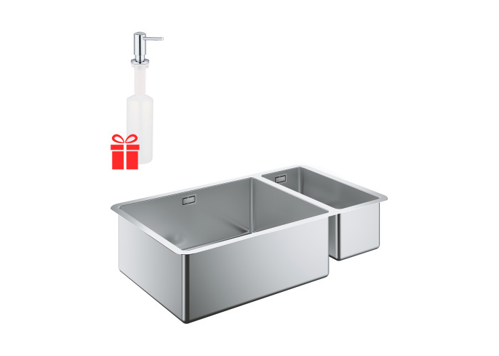 Набір Grohe мийка кухонна K700U 31575SD0 + дозатор для миючого засобу Contemporary 40536000 стане незамінним атрибутом будь-якої сучасної кухні. Стійкість до пошкоджень, чистячих засобів, а також довговічність мийки забезпечується завдяки якісної нержавіючої сталі. Ізоляція GROHE Whisper на нижній частині мийки зменшує шум. Дозатор призначений для зберігання миючого засобу або рідкого мила. Він встановлюється під стільницю або під мийку. Обсяг резервуара - 500 мл.
