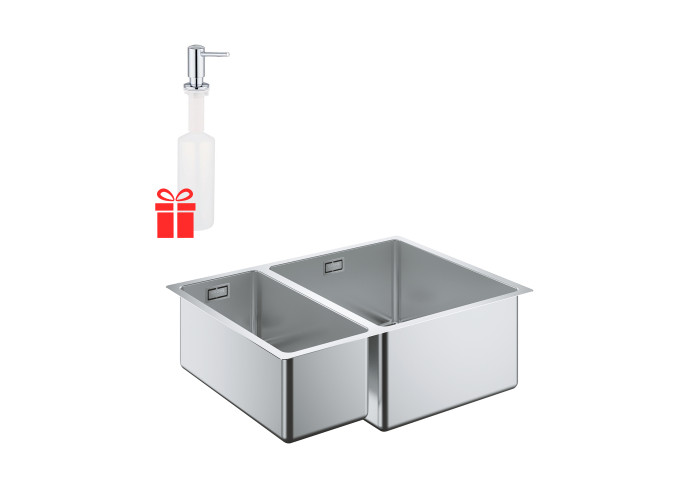 Набір Grohe мийка кухонна K700U 31576SD0 + дозатор для миючого засобу Contemporary 40536000 стане незамінним атрибутом будь-якої сучасної кухні. Стійкість до пошкоджень, чистячих засобів, а також довговічність мийки забезпечується завдяки якісної нержавіючої сталі. Ізоляція GROHE Whisper на нижній частині мийки зменшує шум. Дозатор призначений для зберігання миючого засобу або рідкого мила. Він встановлюється під стільницю або під мийку. Обсяг резервуара - 500 мл.