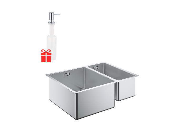 Набір Grohe мийка кухонна K700U 31577SD0 + дозатор для миючого засобу Contemporary 40536000 стане незамінним атрибутом будь-якої сучасної кухні. Стійкість до пошкоджень, чистячих засобів, а також довговічність мийки забезпечується завдяки якісної нержавіючої сталі. Ізоляція GROHE Whisper на нижній частині мийки зменшує шум. Дозатор призначений для зберігання миючого засобу або рідкого мила. Він встановлюється під стільницю або під мийку. Обсяг резервуара - 500 мл.