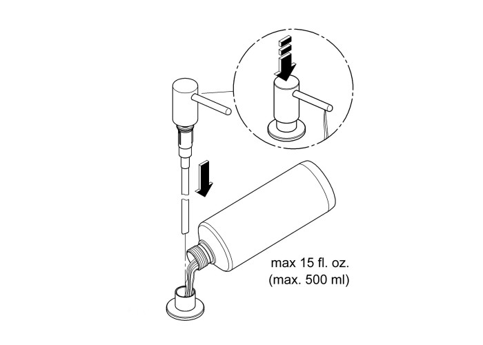 Материал мойки - нержавеющая сталь марки AISI 304 (V2A). Под отдельностоящий врезной или настенный смеситель (смеситель приобретается отдельно). Габариты дозатора: 330х66х109 мм. Объём емкости для моющего средства: 500 мл. Заправка мылом происходит без откручивания ёмкости. отделка: сатинированная.