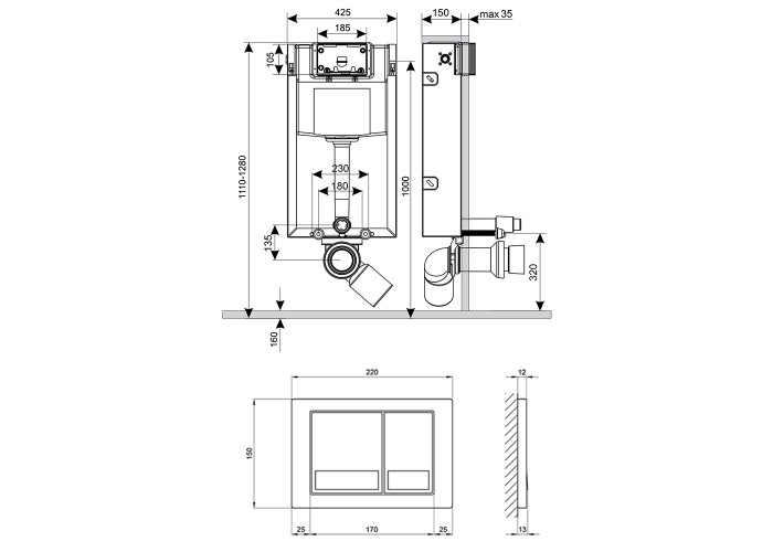 Инсталляция, звукоизоляционная прокладка, комплект подвода воды, 2 болта-держателя для унитаза, выходная труба для унитаза, панель смыва, крепежи.