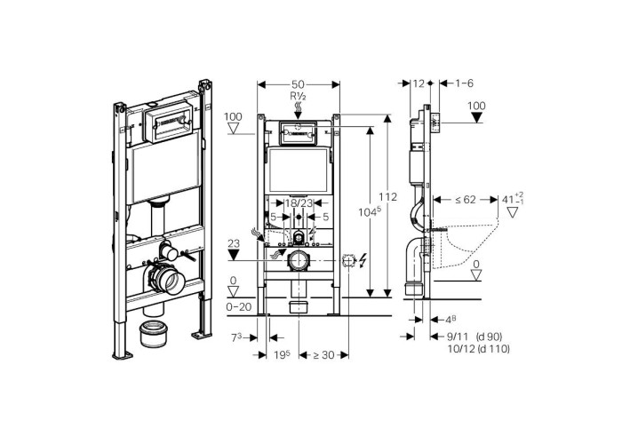 Бачок UP100, толщина 12 см, Бачок скрытого монтажа с фронтальным управлением смыва