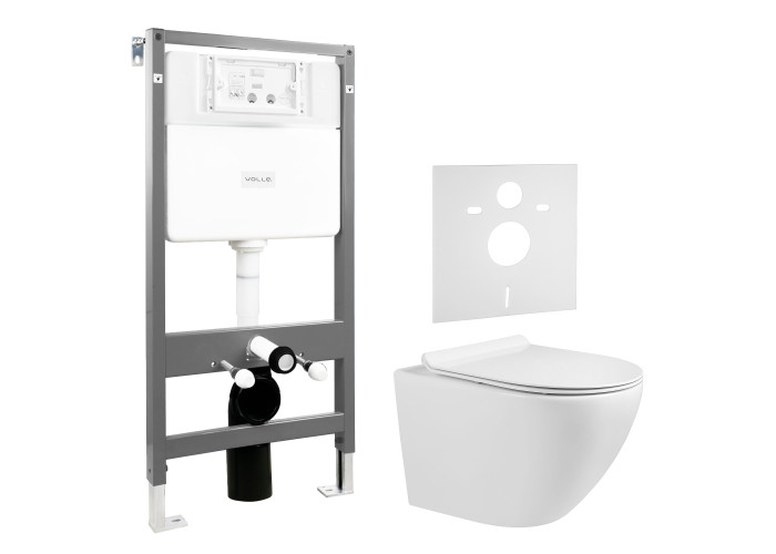 Комплект: FIESTA RIM унитаз подвесной, сиденье SLIM+Комплект инсталляции Volle Master 4в1( белая клавиша).