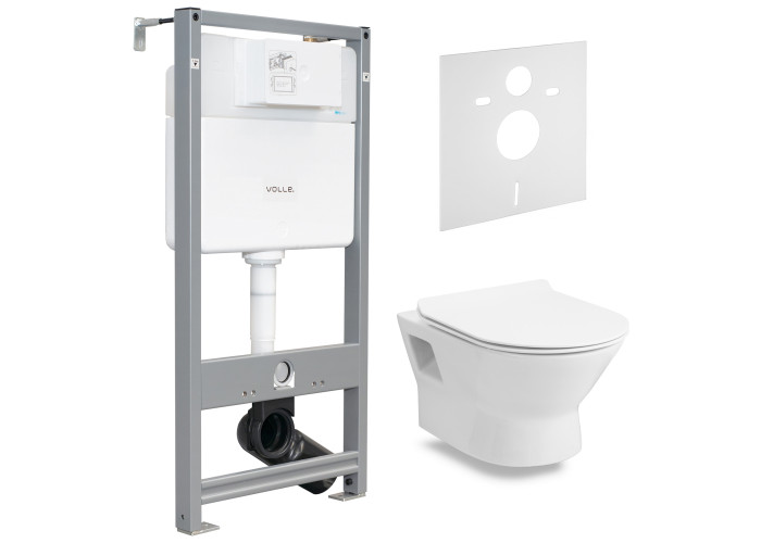 Комплект: FIESTA RIM унитаз подвесной, сиденье SLIM+Комплект инсталляции Volle Master 4в1( белая клавиша).