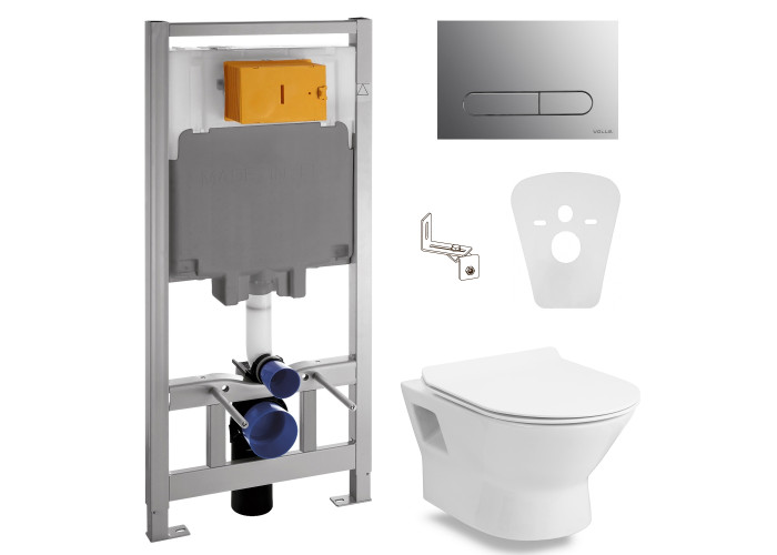 Комплект: FIESTA RIM унитаз подвесной, сиденье SLIM+Комплект инсталляции Volle Master 4в1( белая клавиша).