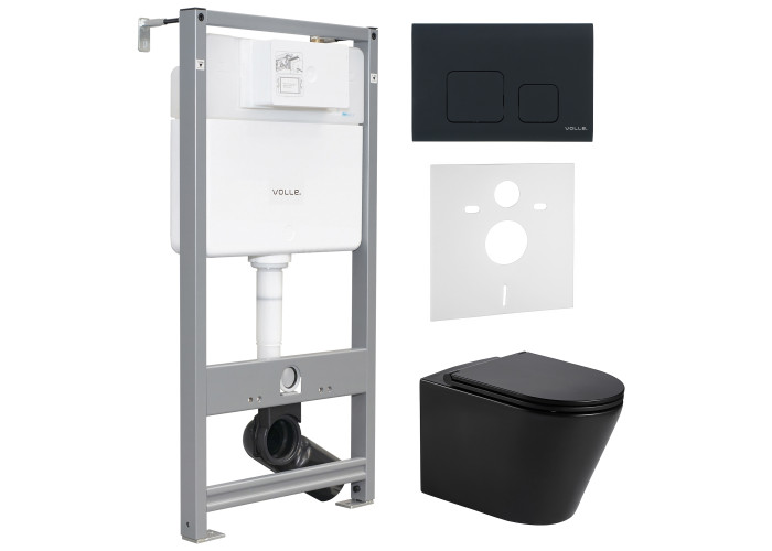 Комплект: FIESTA RIM унитаз подвесной, сиденье SLIM+Комплект инсталляции Volle Master 4в1( белая клавиша).