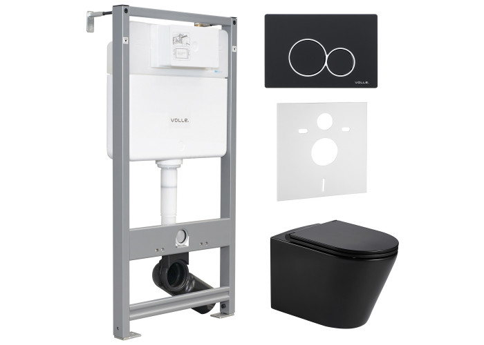 Комплект: FIESTA RIM унитаз подвесной, сиденье SLIM+Комплект инсталляции Volle Master 4в1( белая клавиша).