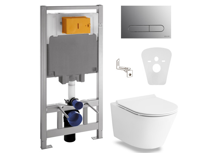 Комплект: NEMO Rimless унитаз подвесной, сиденье Slim+Комплект инсталляции Volle Master 4в1(хром).