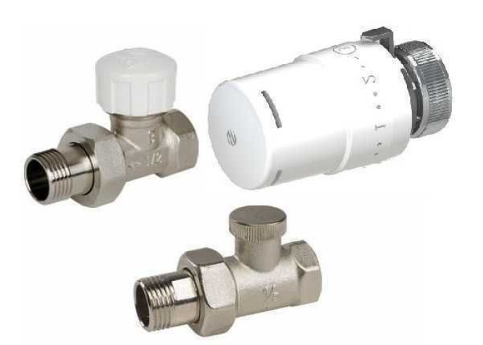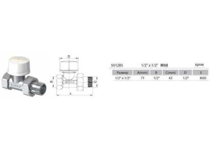 Кран для радиатора 1/2" прямой под термоголовку +1/2 обратка + термоголовка(KCT02)М30 (набор) ARCO made in Spain