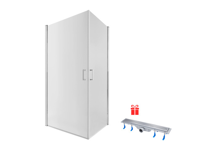 Набор Qtap душевая кабина Gemini CRM1018RC6 100х80 см, стекло Clear 6 мм + трап линейный Dry FB304-600 с сухим затвором и нержавеющей решеткой 600х73 мм