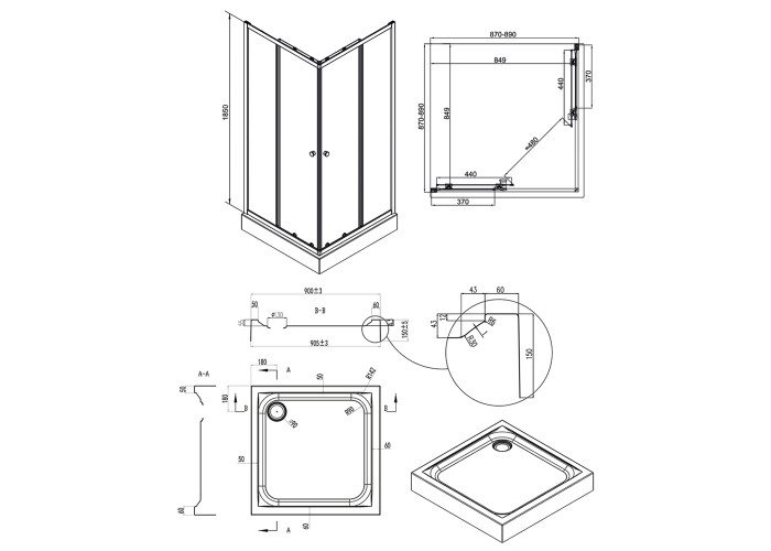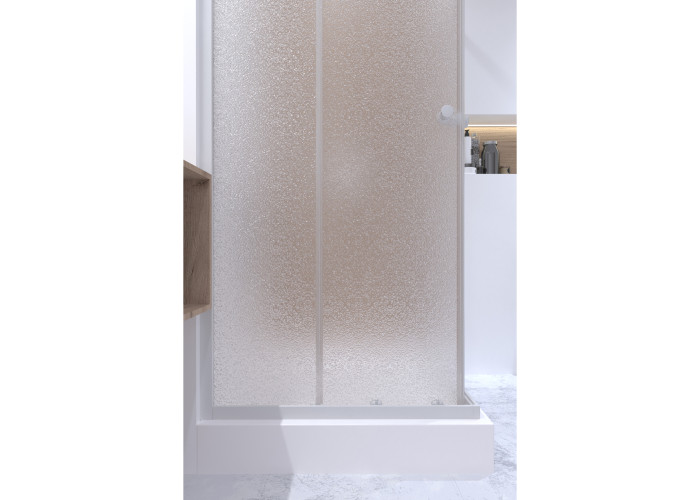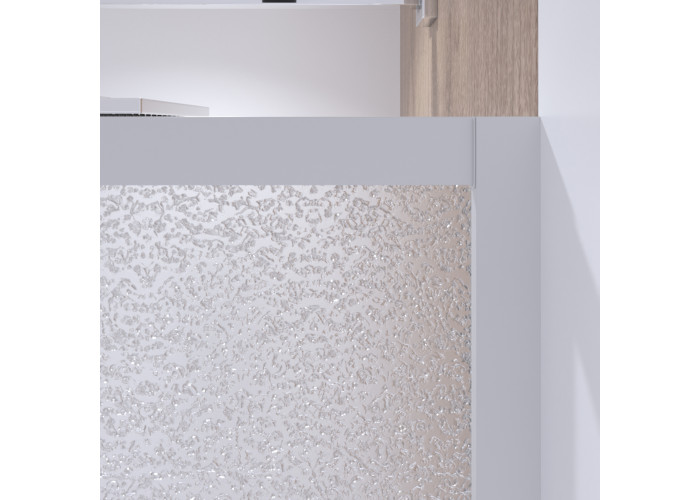 Двойные ролики, ручки, верхний профиль, нижний профиль, боковые профили, набор уплотнителей, расширительные профили, 2 стеклянные двери, 2 глухих стекла, комплект крепежей, заглушки, соединяющие элементы, фиксаторы.