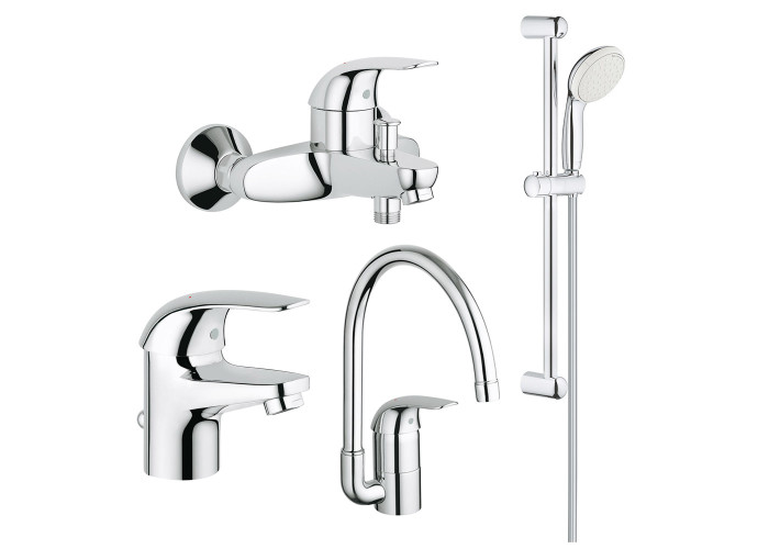 Набор смесителей Grohe Euroeco 123242K - комплексный подход к выбору смесителей. В составе смеситель для ванны Euroeco (32743000), смеситель для раковины Euroeco (23262000), смеситель для кухни Euroeco (32752000), душевой гарнитур New Tempesta 100 (27598001). Качественное хромированное покрытие, оптимальное распределение воды, плавность хода рычагов являются бесспорными преимуществами данного набора.