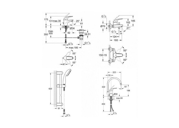 GROHE SpeedClean - предотвращение образования известковых отложений. GROHE DreamSpray - оптимальное распределение воды по каждой душевой форсунке. GROHE EcoJoy - водосберегающая технология. GROHE ShockProof - защитное силиконовое кольцо на лейке. GROHE Inner WaterGuide - предотвращение нагрева поверхности лейки. GROHE SilkMove - плавность хода рычага. GROHE StarLight - хромированное покрытие.