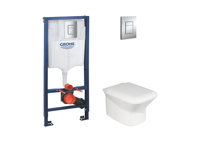Унитаз: Azzurra Prua PRU100B1SOSK. Сиденье: Azzurra Prua PRU1800F. Инсталляция с панелью смыва: Grohe Rapid SL 38772001