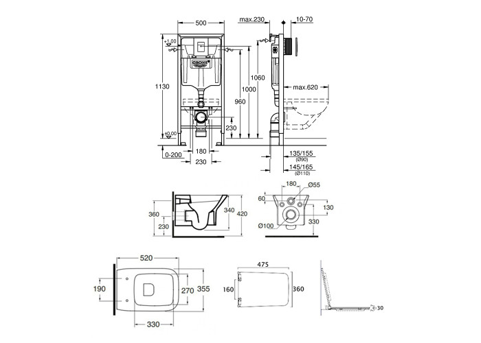 Унитаз, сиденье, инсталляция, панель смыва, крепежи.