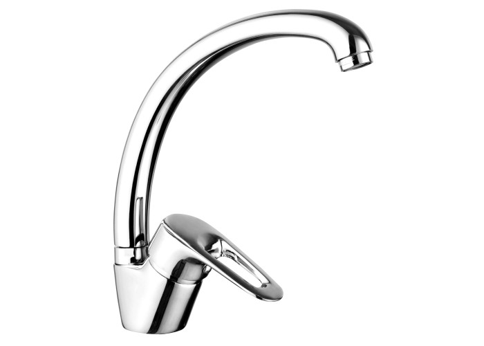Смеситель для кухни однорычажный,  хром, поворотный высокий излив. Материал - латунь.