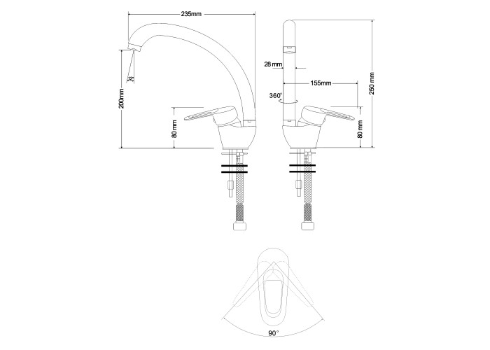 NARCIZ смеситель для кухни однорычажный, ручка сбоку, хром 40мм