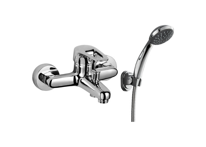 Смеситель для ванны однорычажный,  хром, в комплекте: шланг, лейка, держатель. Материал - латунь.