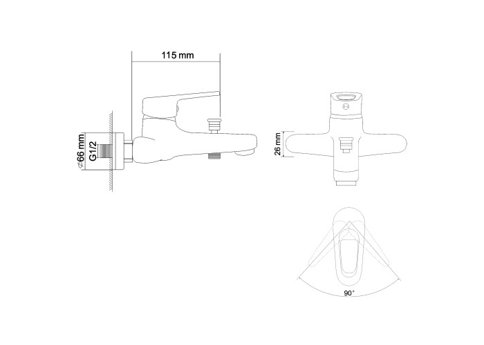 NARCIZ смеситель для ванны однорычажный, хром 40мм