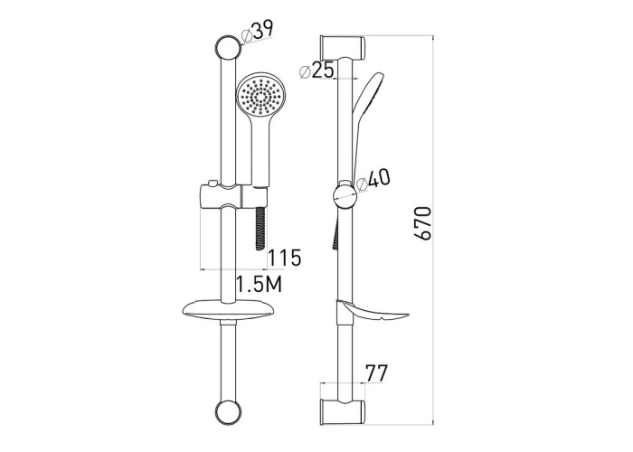 • Материал штанги - нержавеющая сталь, держатель и мыльница - ABS пластик