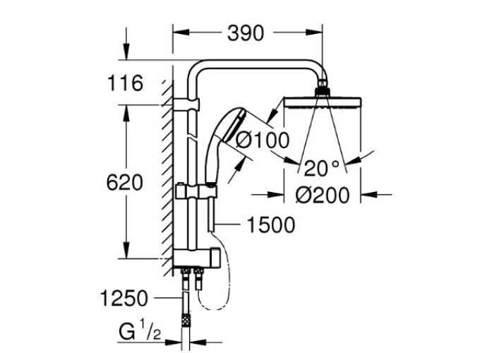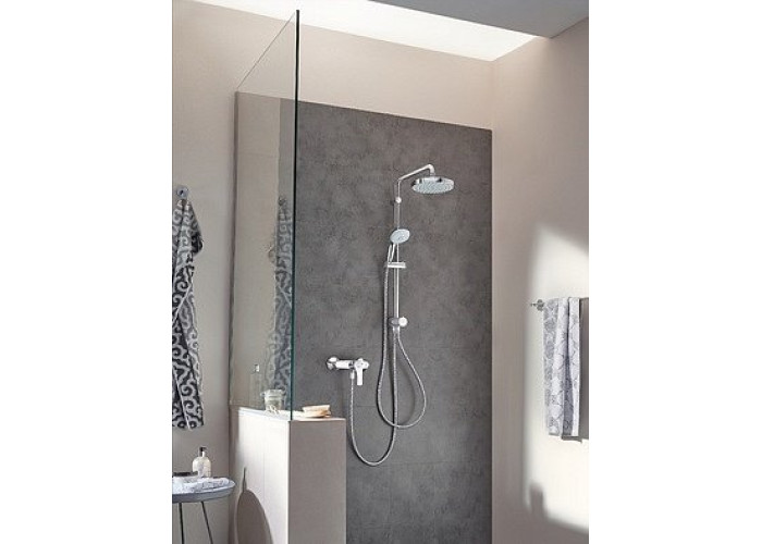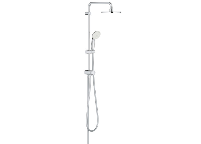 New Tempesta 200 душевая система, латунь, пластик, цвет - хром. Горизонтальный душевой кронштейн, Переключатель на 3 положения, лейки, шланг.
