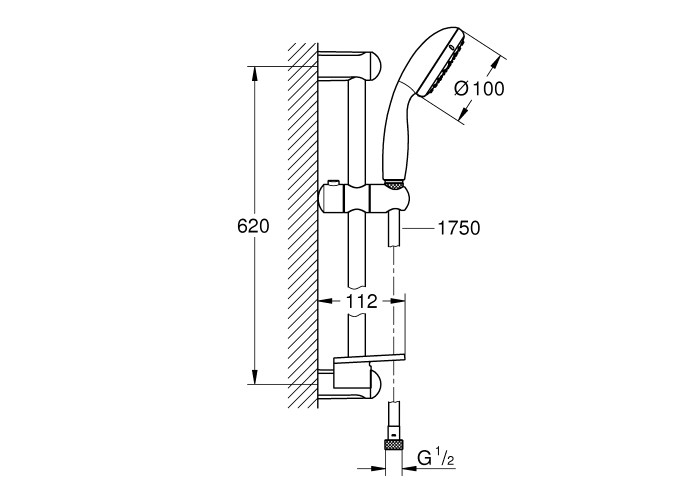 Душевой набор, 600мм + полочка, диаметр 100 мм, настенный, мультирежимный, цвет - хром.